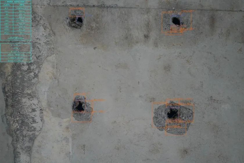 裂缝检测:搭载6100万像素相机可识别0.2mm级裂缝,并通过AI算法自动标注裂缝长度、宽度
